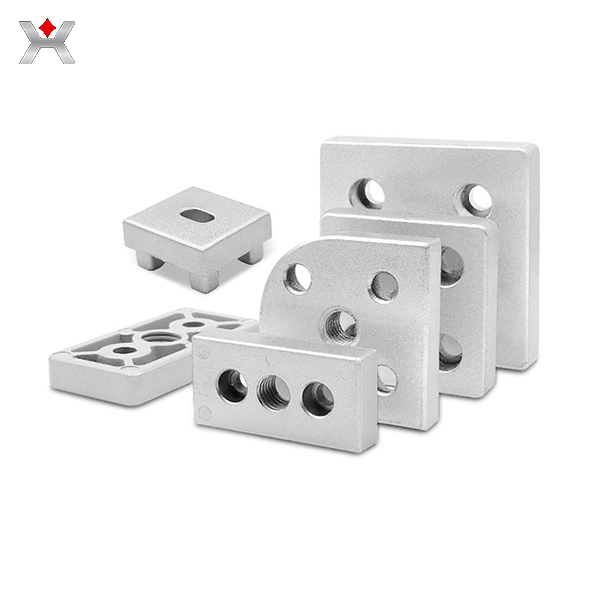 Aluminum angle plate is mainly used in the connection between the end face of industrial aluminum profile and the hoof angle or caster. The end face cover has a slot, which can be fixed in the profile slot to prevent rotation. The end of the profile needs to be tapped, and then use cylinder head bolts connect to the end cover.